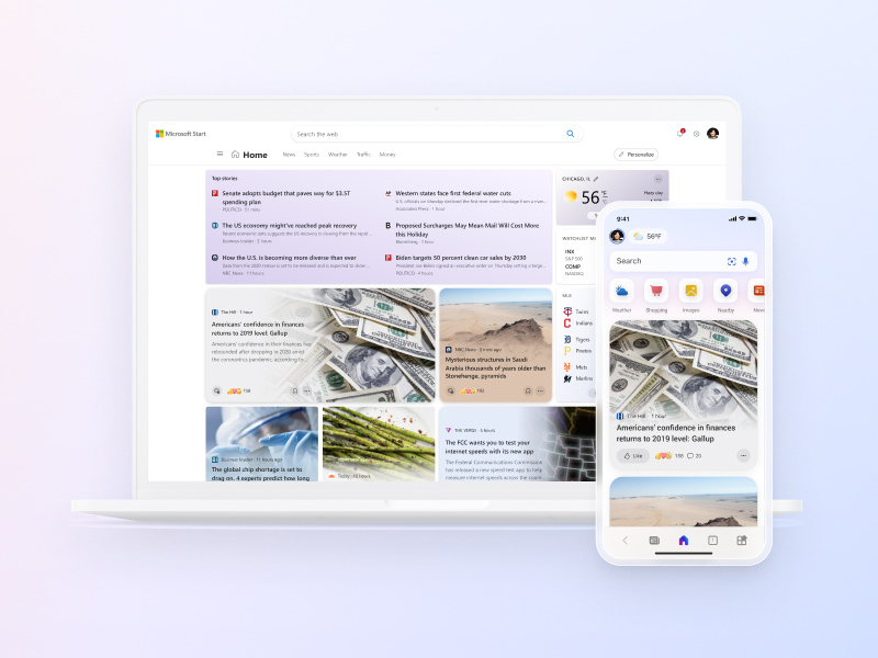 Poi come app mobile su Android e iOS, dall’esperienza Notizie e interessi sulla barra delle applicazioni di Windows 10, dall’esperienza dei widget in Windows 11 e dalla pagina della nuova scheda di Microsoft Edge.