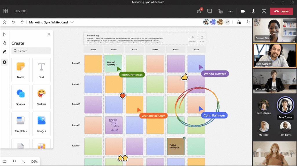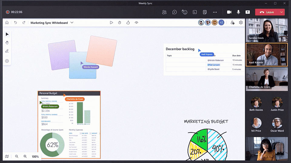È ancora possibile utilizzare Whiteboard per l’inking, ma secondo Microsoft tutte queste nuove funzionalità trasformano Whiteboard in un spazio di lavoro e collaborazione visuale ancora più ricco, che consente agli utenti del team di essere più creativi insieme.