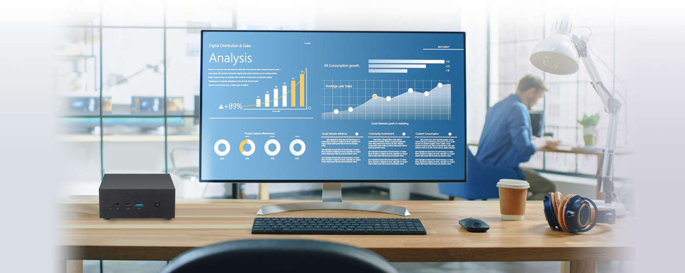 Per l’elaborazione, il mini Pc PN63-S1 si affida a processori Intel Core di undicesima generazione con grafica Intel Iris Xe.