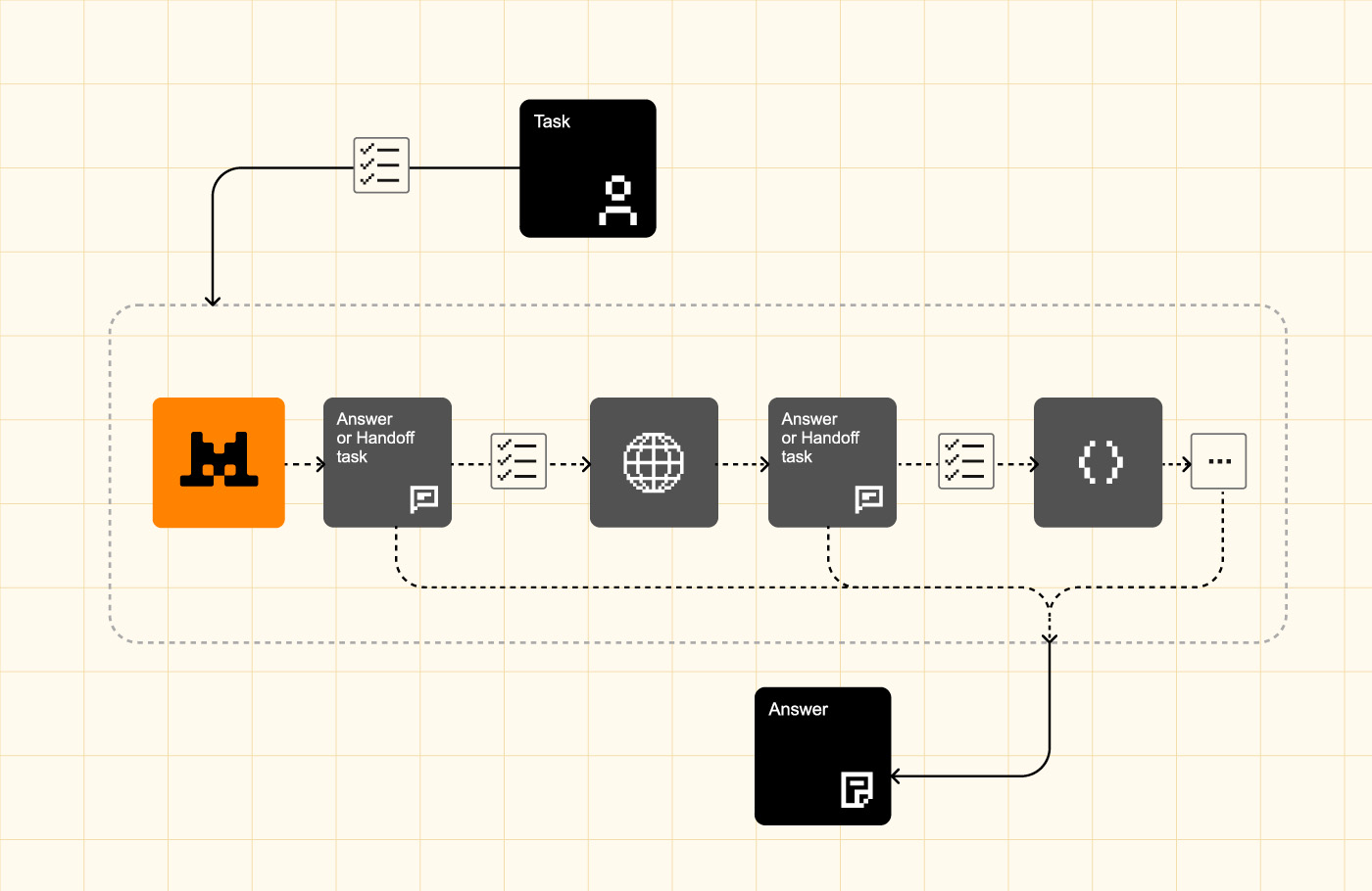 L’API Agents completa l’API Chat Completion di Mistral AI offrendo un framework dedicato che semplifichi l’implementazione di casi d’uso agenziali e serva da struttura portante delle piattaforme agenziali di livello enterprise.