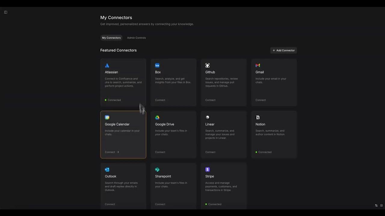 - Personalizzazione: aggiungere i propri connettori MCP per estendere la copertura, in modo da poter eseguire query, ottenere riepiloghi e agire sui sistemi e sui flussi di lavoro specifici della propria attività.