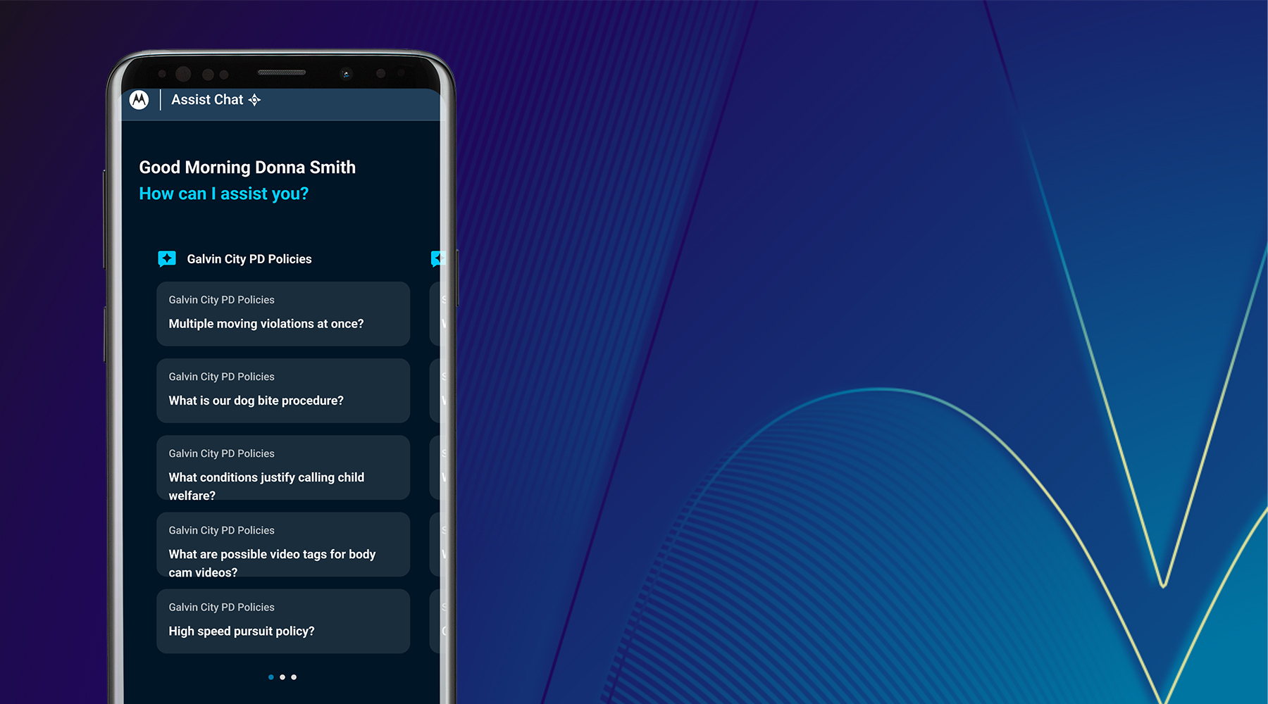 Assist Chat is a conversational interface throughout Motorola Solutions’ public safety workflow applications, where Assist helps to integrate the appropriate AI models, reliability, guardrails and security into solutions that enhance efficiency and improve response times and outcomes. With Assist Chat, users can securely type or make voice queries to search dispatch, records, evidence data and previous case history, including searching through videos and images. Agencies can even use AI to identify gaps in or improvements to agency policies, such as recommending new policies based on its personnel’s most frequent queries or industry groups’ evolving guidance.
