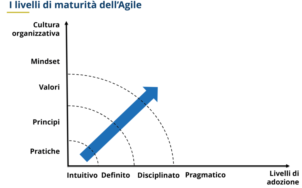 Un cambio di prospettiva che, lo riconosce Mainetti, richiede di lasciare il modello della “boutique company” sul quale si è basato il successo e il riconoscimento della qualità dei prodotti di WebScience, ma che ne ha rallentato la crescita, per una difficoltà – intrinseca in questo modello – di scalare e di essere industrializzato. Resta più che valida invece, l’adozione del modello Agile, tanto che adesso.it si definisce Agile Digital Factory. L’obiettivo è la creazione di valore, non la semplice soddisfazione dei requisiti definiti a priori, valorizzando il cambiamento, non soltanto accogliendolo come inevitabile. L’ambiente e il mercato si trasformano non linearmente, e solo un approccio in cui l’obiettivo è costantemente modificato per adattarsi al cambiamento permette di rimanere competitivi. Per farlo occorre però, sostiene Mainetti, che la metodologia Agile non solo sia adottata al livello più alto, ma che diventi il mindset – la parola chiave del giorno… – dell’azienda, attraverso un processo di crescita che parte dall’adozione delle pratiche (Scrum, Kanban, Extreme Programming…) nello sviluppo del software per arrivare a organizzare l’azienda secondo la filosofia Agile.