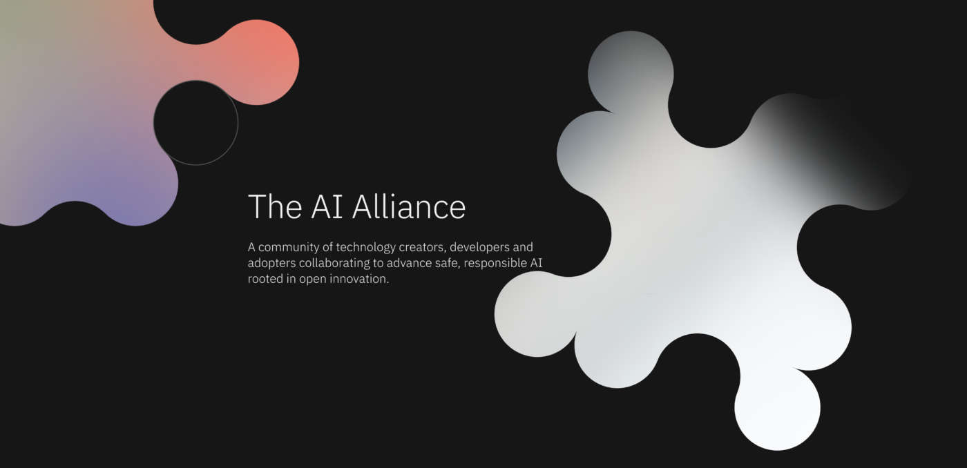 L’AI Alliance è lanciata congiuntamente da IBM e Meta insieme a organizzazioni leader del settore, della pubblica amministrazione e del mondo accademico. I partner e i collaboratori includono: Agency for Science, Technology and Research (A*STAR); Aitomatic; AMD; Anyscale; Cerebras; CERN; Cleveland Clinic; Cornell University; Dartmouth; Dell Technologies; École Polytechnique Fédérale de Lausanne; ETH Zurich; Fast.ai; Fenrir, Inc.; FPT Software; Hebrew University of Jerusalem; Hugging Face; IBM; Abdus Salam International Centre for Theoretical Physics (ICTP); Imperial College London; Indian Institute of Technology Bombay; Institute for Computer Science, Artificial Intelligence; Intel; Keio University; LangChain; LlamaIndex; Linux Foundation; Mass Open Cloud Alliance, operated by Boston University and Harvard; Meta; Mohamed bin Zayed University of Artificial Intelligence; MLCommons; National Aeronautics and Space Administration; National Science Foundation; New York University; NumFOCUS; OpenTeams; Oracle; Partnership on AI; Quansight; Red Hat; Rensselaer Polytechnic Institute; Roadzen; Sakana AI; SB Intuitions; ServiceNow; Silo AI; Simons Foundation; Sony Group; Stability AI; Together AI; TU Munich; UC Berkeley College of Computing, Data Science, and Society; University of Illinois Urbana-Champaign; The University of Notre Dame; The University of Texas at Austin; The University of Tokyo; Yale University.