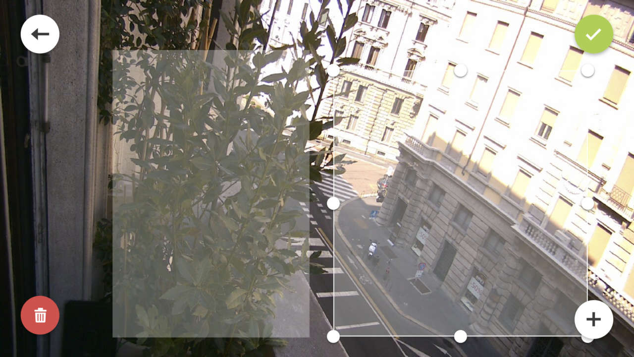L’angolo di ripresa della videocamera, di ben 100° di ampiezza, rischia di inquadrare anche zone che non si desidera monitorare attivamente; l’app permette così di definire delle aree entro le quali viene effettuato il riconoscimento del movimento, escludendo qualsiasi attività accada fuori dalle zone selezionate.