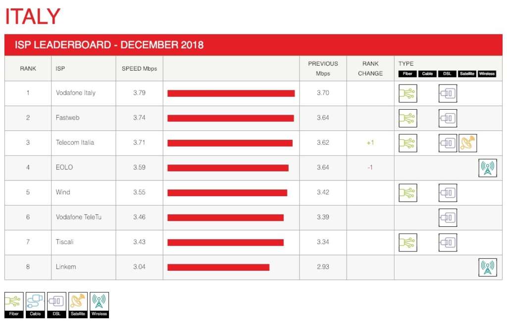 Nell’indice di velocità degli ISP di Netflix per il mese di dicembre 2018, Vodafone si posiziona al primo posto, ottenuto con una velocità di 3,79 Mbps.