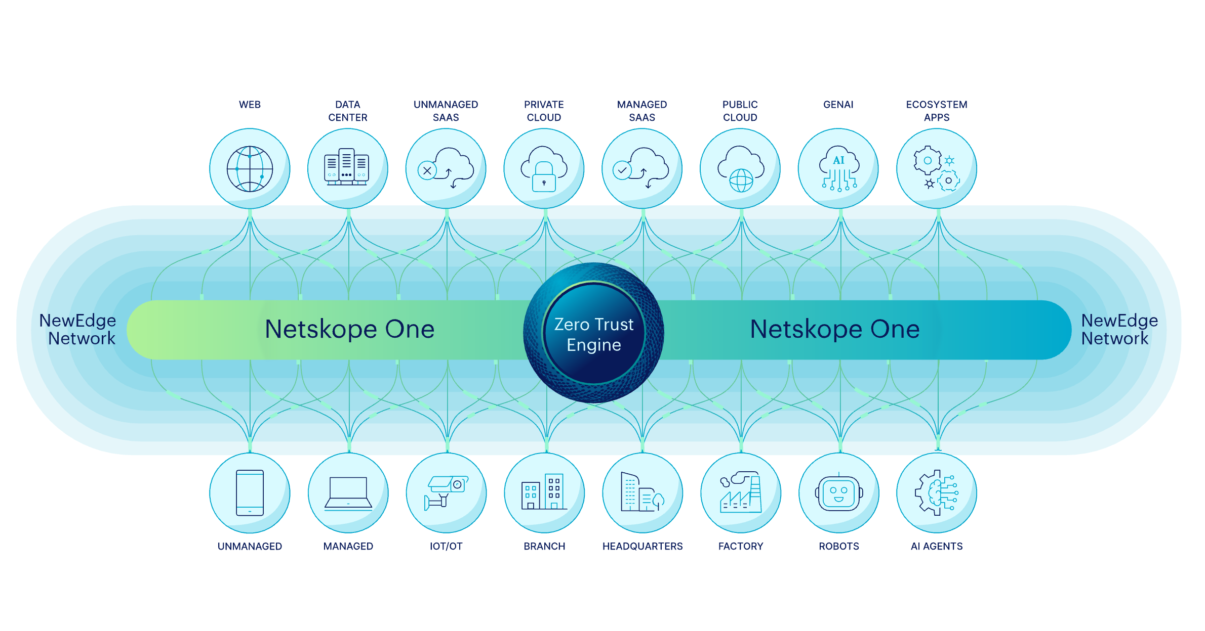 La piattaforma Netskope One offre l’intera gamma di funzionalità Netskope che consentono ai team di sicurezza, rete, infrastruttura e operation (I&O) di ridurre rischi, costi e complessità, proteggendo e accelerando tutto, ovunque.  Netskope One è una piattaforma cloud-native che offre servizi convergenti di sicurezza e networking, progettata per facilitare la trasformazione verso architetture Secure Access Service Edge (SASE) e Zero Trust.