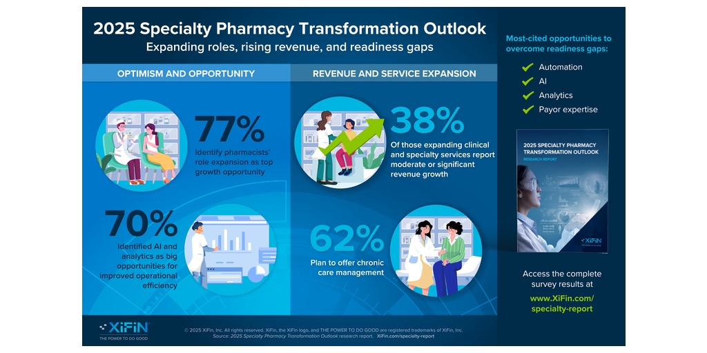SAN DIEGO--(BUSINESS WIRE)--#digitalpathology--XiFin, Inc., a leader in revenue cycle management (RCM) and billing solutions enhanced with embedded artificial intelligence (AI), shared findings from its inaugural Specialty Pharmacy survey at Asembia’s AXS25 specialty pharmacy summit. The survey1 finds an industry poised to step into a more significant role in addressing patient care needs, with a focus on managing chronic conditions that require increasingly complex medication regimens.