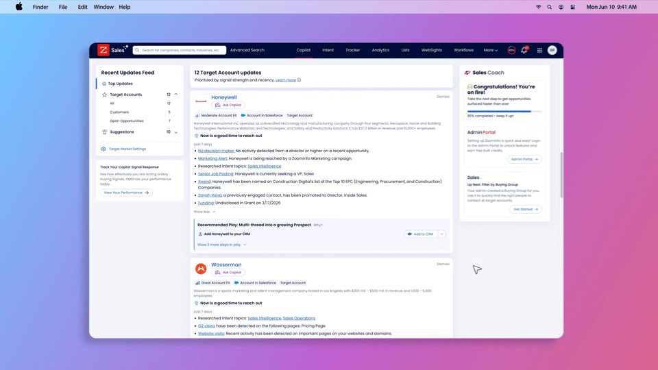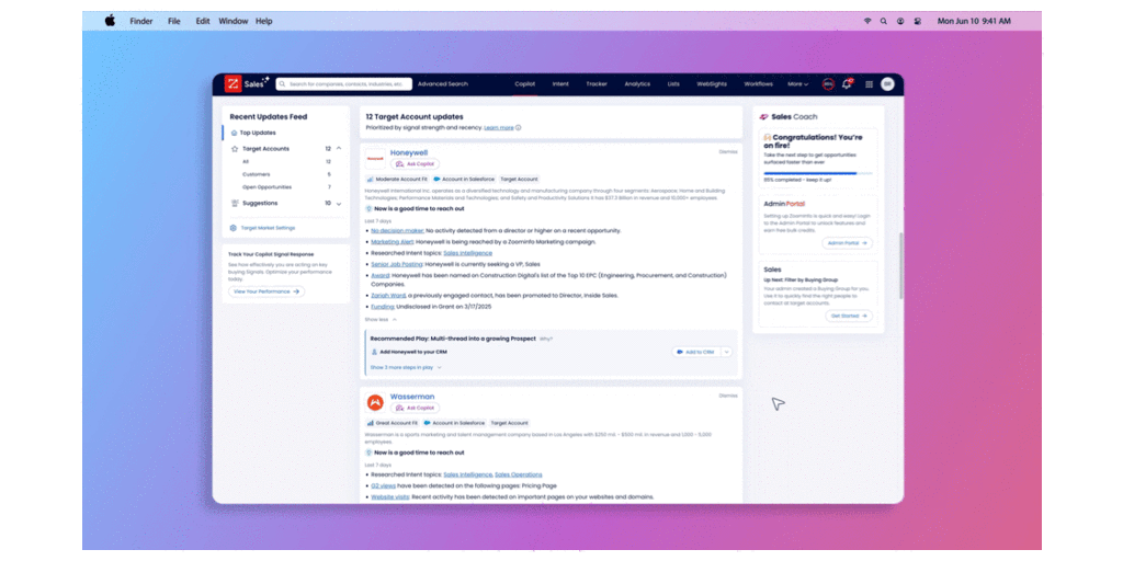 Watch ZoomInfo’s Copilot update video to see the new Copilot features in action, and read the ZoomInfo blog to learn more.