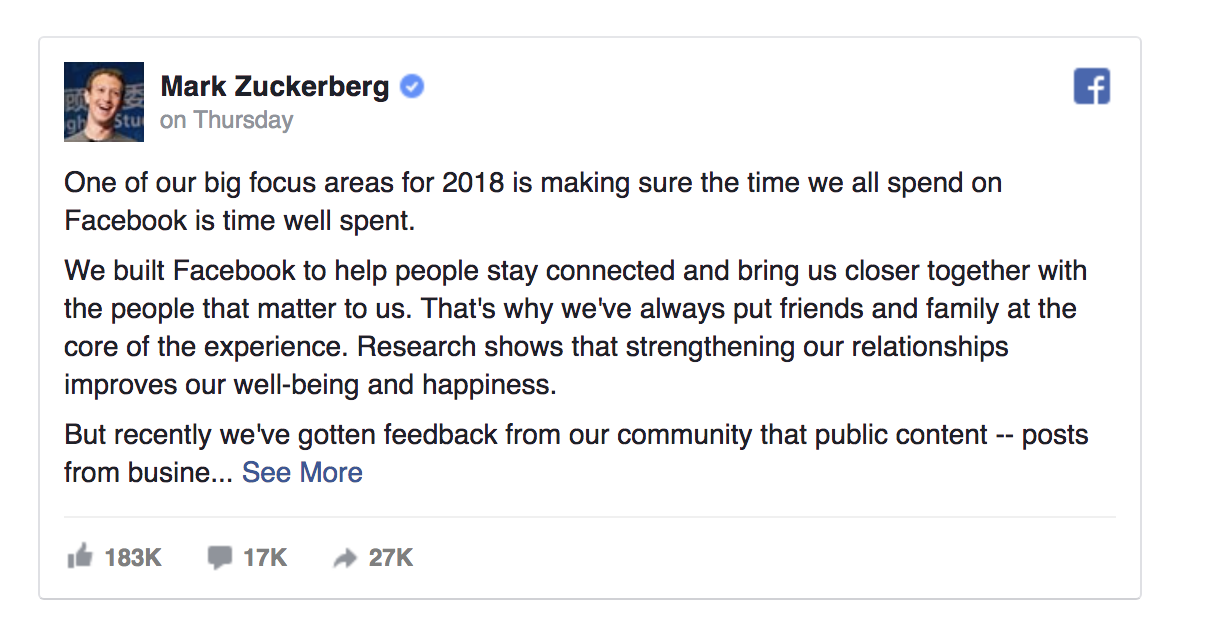 In un post sul blog di Facebook, Adam Mosseri spiega che il social network è stato creato per avvicinare le persone e creare relazioni. Uno dei modi in cui lo fa è collegando le persone a post significativi dei loro amici e familiari nel news feed.
