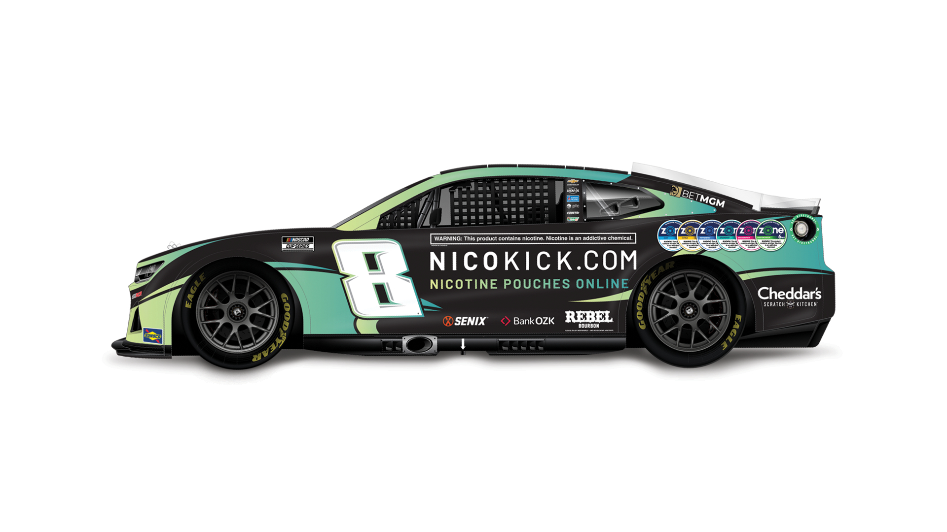 “We are delighted to collaborate with zone™ and support the No. 8 car at Talladega,” said Sarah Krysalka, Senior Director of Commercial Partnerships and External Affairs at Haypp Group, the parent company of Nicokick.com and Northerner.com. “As the preferred online retailer for zone™, Nicokick sees this strategic partnership as a powerful way to drive shared brand awareness, create new avenues to connect with adult consumers, and increase the visibility of our platform.”