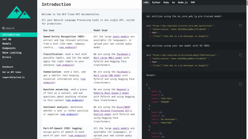 NLP Cloud, di fatto, è un’API che supporta l’interazione tra computer e linguaggio umano. Combinando Natural Language Processing e DevOps, NLP Cloud aiuta gli sviluppatori di app e i data scientist ad aggiungere l’intelligenza di elaborazione del linguaggio alle loro app, in produzione.