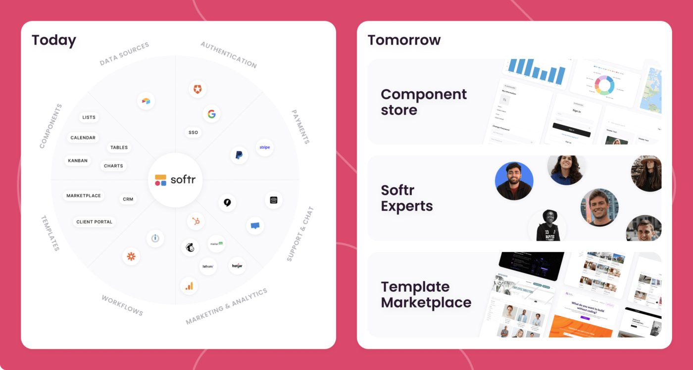 In secondo luogo, le aziende saranno in grado di estendere Softr oltre la piattaforma stessa, con l’aiuto di tre pilastri principali.