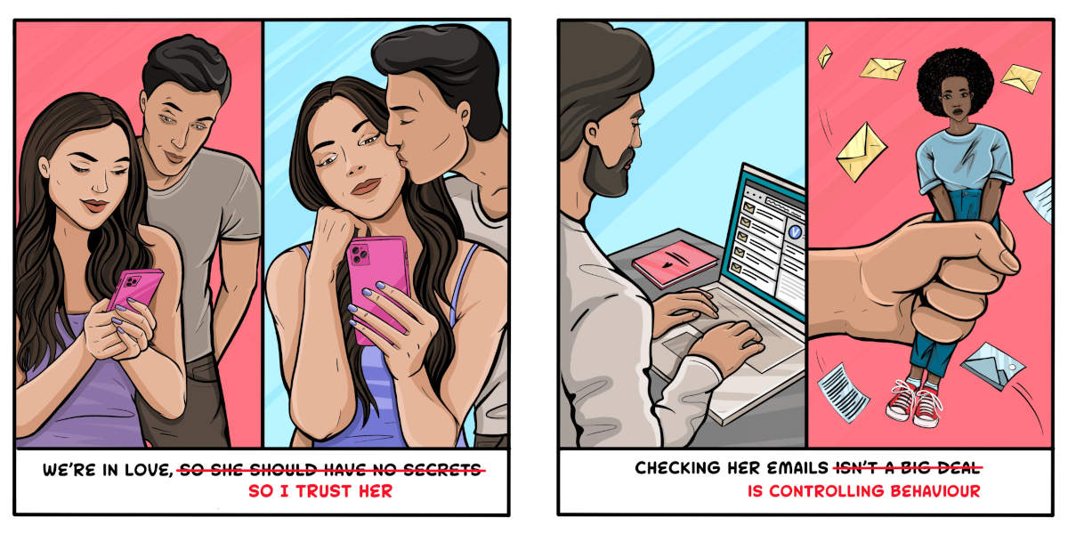 I comportamenti digitali abusivi sono diventati così abituali che molti uomini membri dei nostri programmi non sono nemmeno consapevoli che i loro comportamenti costituiscono violenza. Con la campagna #NoExcuse4Abuse siamo orgogliosi di fare luce sulle scuse inconsistenti usate per giustificare gli abusi facilitati dalla tecnologia”.