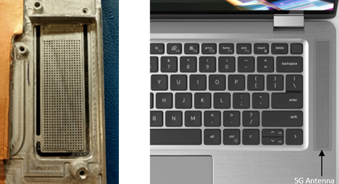 Pensando fuori dagli schemi, spiega Meghana Patwardhan, gli ingegneri di Dell hanno ideato un design che incorpora abilmente le antenne 5G negli altoparlanti all’interno del brevetto di base del sistema.