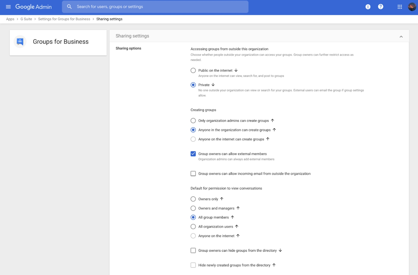 Le impostazioni di Google Groups for Business permettono agli amministratori di controllare come i Gruppi Google possono essere creati e utilizzati all’interno dei loro domini.