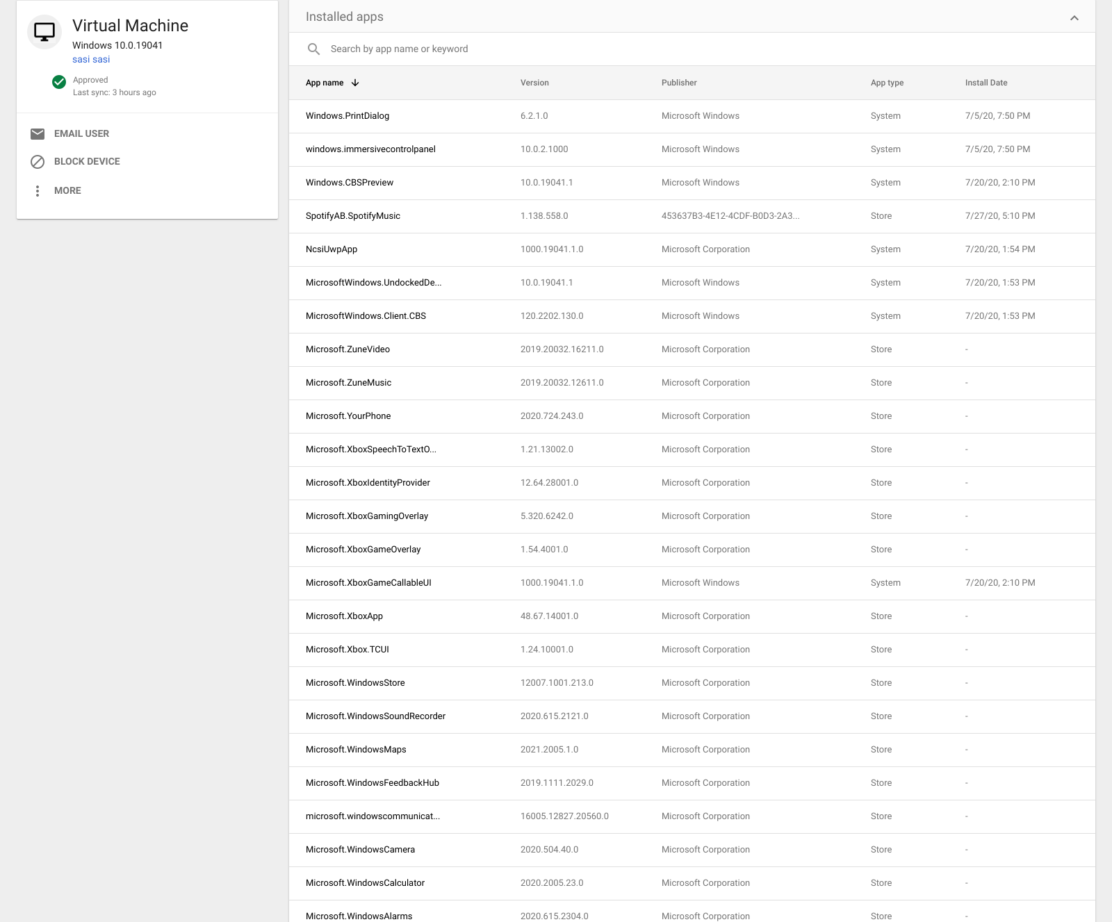Infine, gli amministratori ora hanno la possibilità di visualizzare un elenco di tutte le applicazioni installate sui dispositivi Windows 10 che vengono gestiti con la funzionalità di Windows device management.