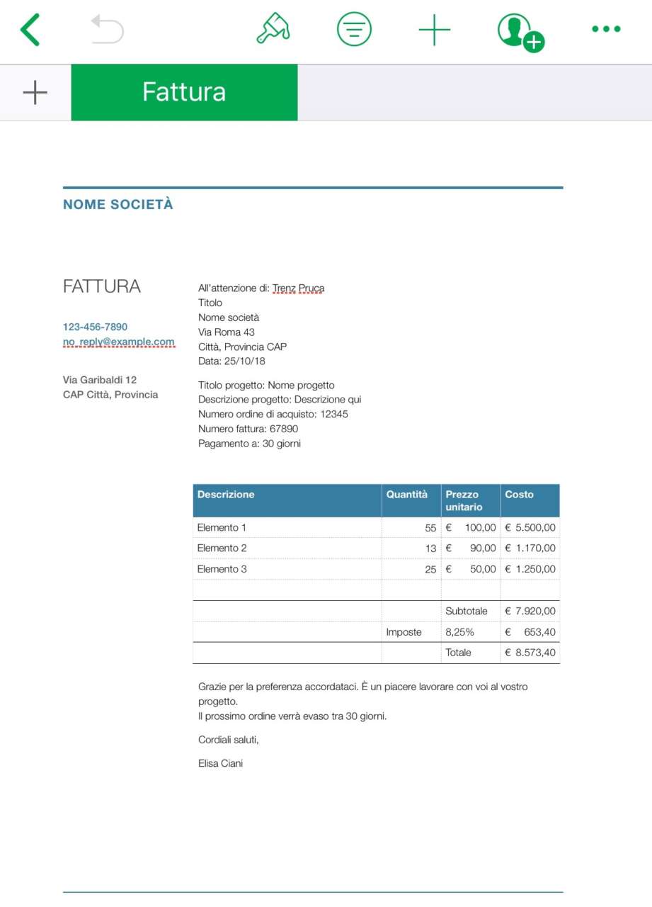 Numbers per iOS esporta il foglio di calcolo nel formato Microsoft Excel Office Open XML (.xlsx).