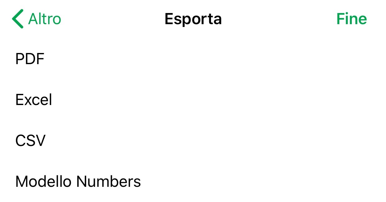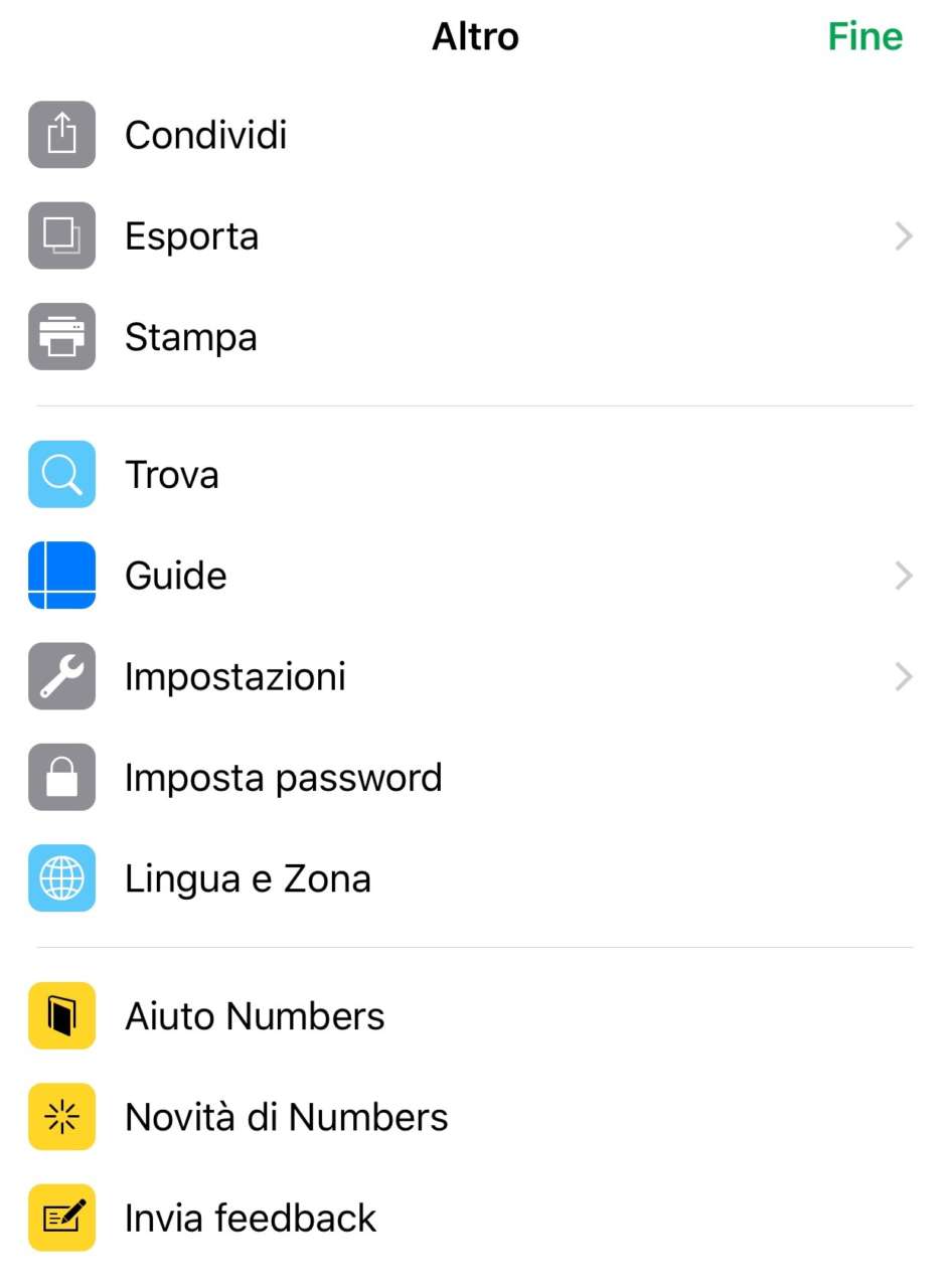• Numbers mostra un menu di opzioni. Da qui, tocca Esporta.