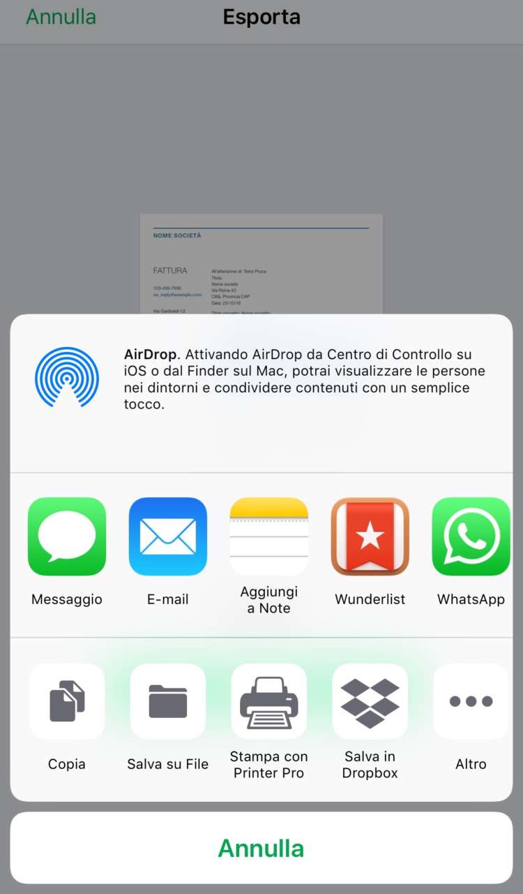 Numbers esegue la conversione del documento e propone il pannello standard di condivisione. Qui, puoi scegliere come condividere, inviare o salvare il foglio di calcolo convertito in formato Excel. Ad esempio, è possibile inviarlo per email, oppure salvarlo sul proprio servizio di cloud storage e altro ancora.