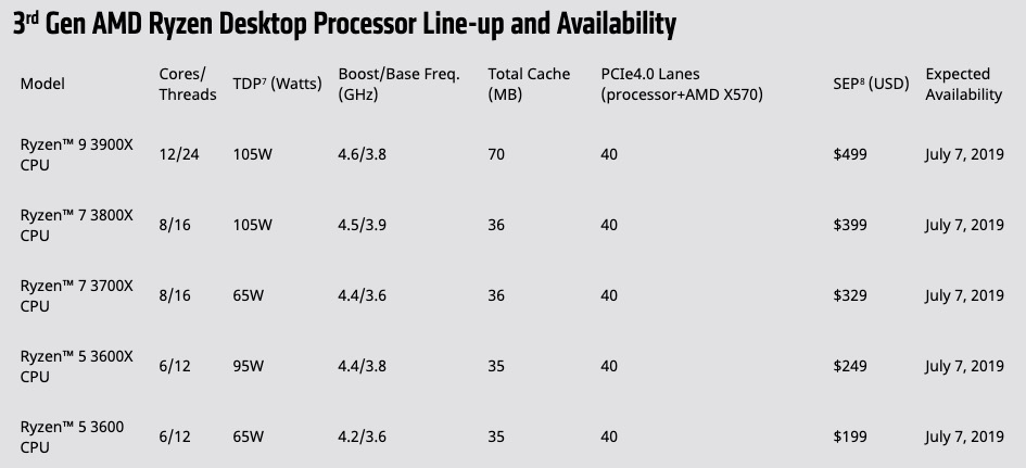 La disponibilità globale dei processori desktop Amd Ryzen di terza generazione è attesa per il 7 luglio 2019.