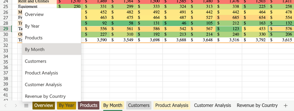 Quando si apre una cartella Excel contenente più fogli di lavoro, ora è possibile saltare direttamente a quello desiderato. Basta cliccare sul nuovo pulsante Tutti i fogli (All Sheets) nell’angolo in basso a sinistra e poi selezionare il foglio di lavoro.