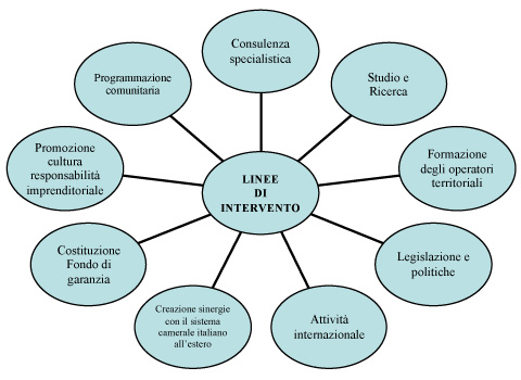 Infine, è prevista un’intensa attività internazionale, destinata a favorire e promuovere progetti di microcredito e di microfinanza per le imprese italiane che intendano operare all’estero in sinergia con la rete internazionale delle Camere di Commercio. Il Gruppo prevede, inoltre, la realizzazione di programmi finalizzati alla canalizzazione delle rimesse degli immigrati.
