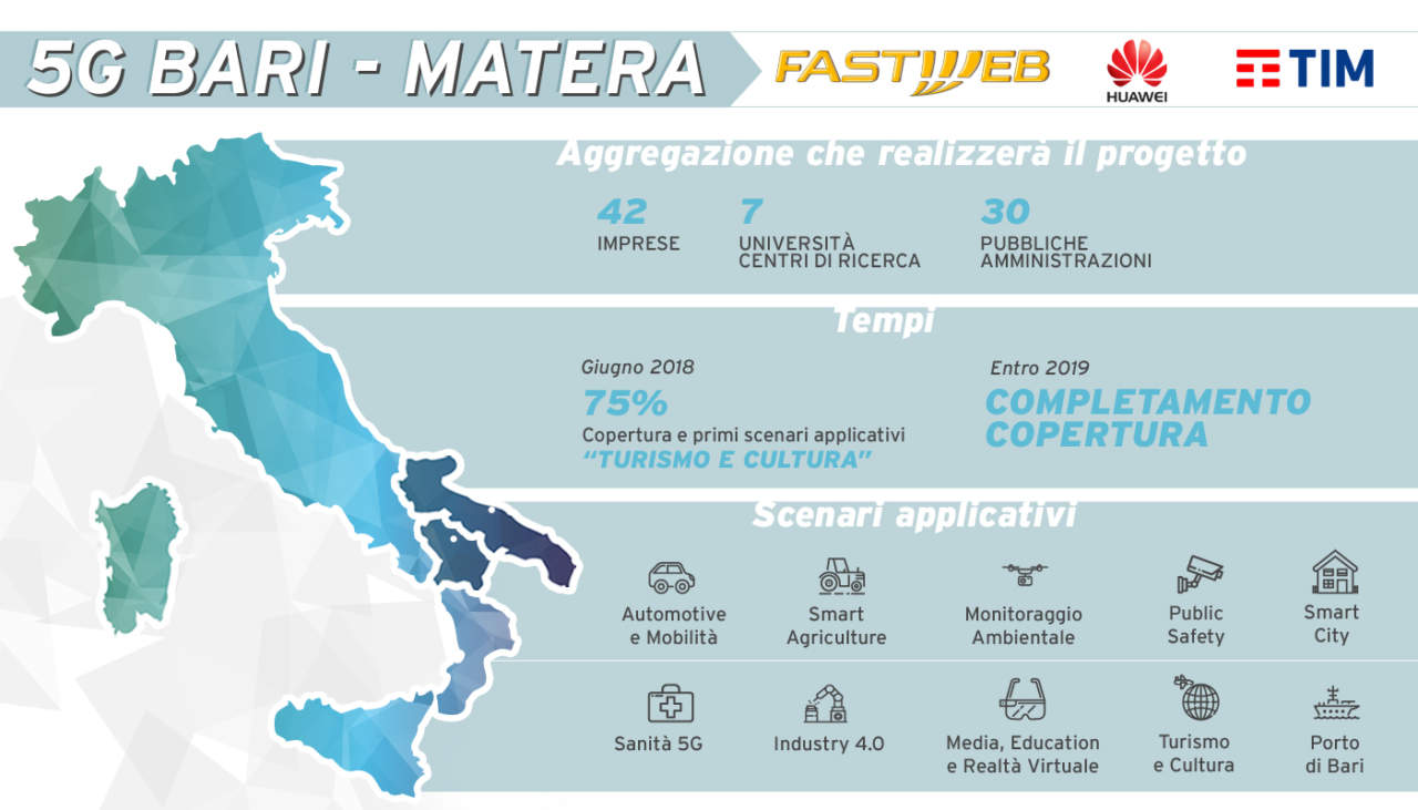 Il 5G compie un altro importante passo in avanti grazie alle nuove applicazioni lanciate da TIM, Fastweb e Huawei, nell’ambito della verifica svolta dal Ministero dello Sviluppo Economico sullo stato di avanzamento del Progetto “Bari Matera 5G”.