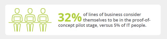 Tuttavia, solo il 3% afferma che tale strategia ha portato a nuovi flussi di guadagno. Vi è, dunque, una sorta di disconnessione tra il business e l’It. Il 32% dichiara di essere in una fase pilota dei propri progetti digitali e solo il 5% afferma che la propria azienda sta sviluppando strategie digitali per supportare nuovi flussi di fatturato.