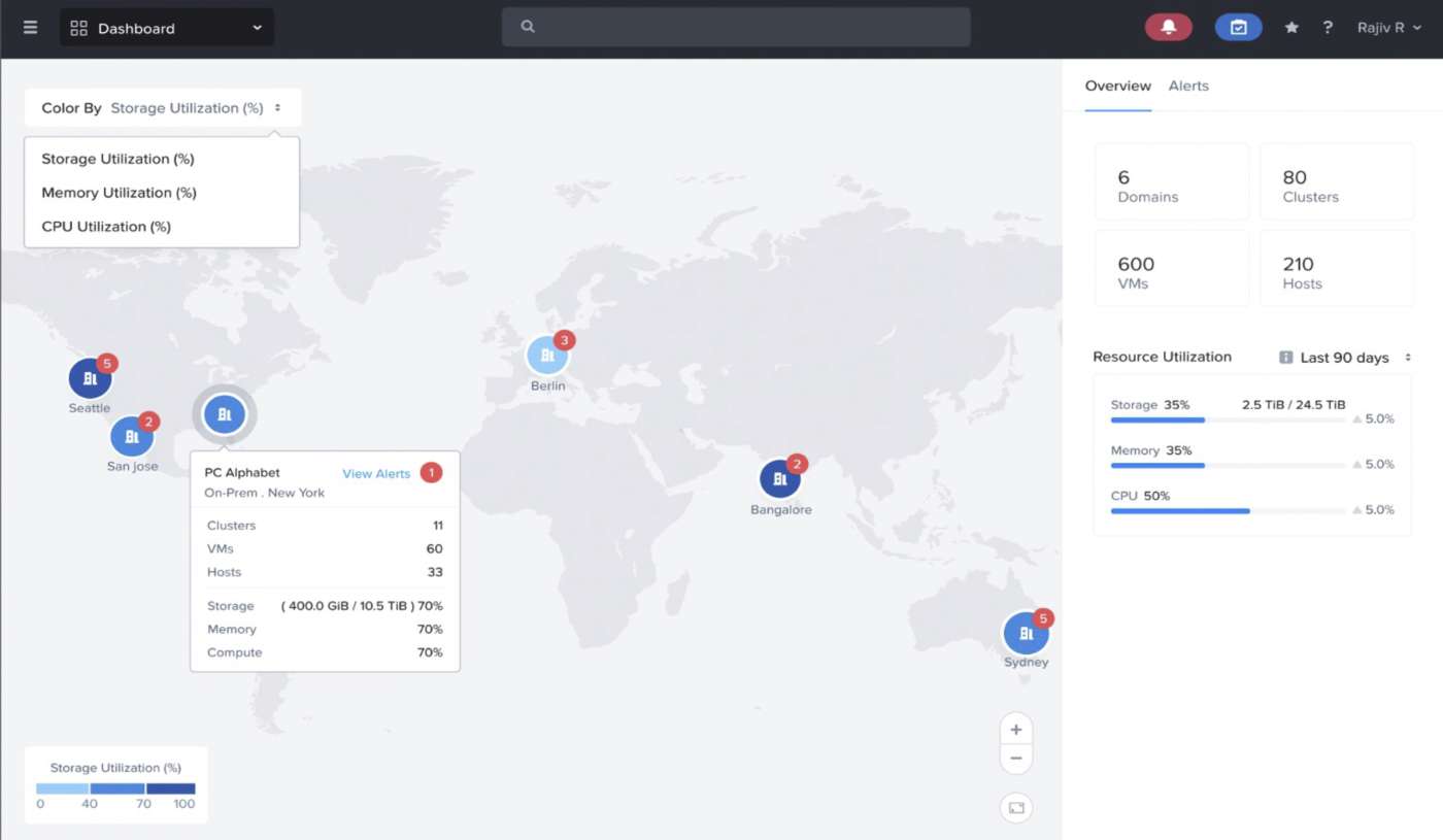 Dalla dashboard di Nutanix Central, i clienti potranno accedere alle metriche a livello di dominio e di cluster, tra cui l’utilizzo della capacità e le statistiche di riepilogo degli avvisi, per ottenere una rapida panoramica dello stato di ciascun dominio. Questa funzionalità consentirà anche una navigazione senza soluzione di continuità verso i singoli domini, in base al controllo di accesso basato sul ruolo dell’utente (RBAC), in tutti i domini registrati.
