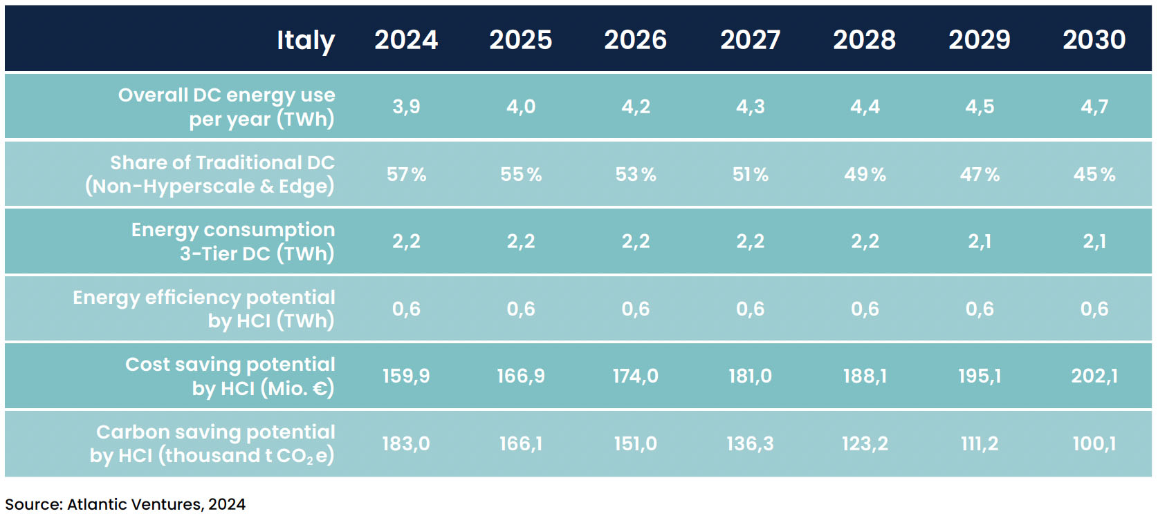 • Impatto a livello regionale – In tutta la regione EMEA, una transizione su larga scala potrebbe far risparmiare fino a 92 TWh di elettricità ed eliminare 19 milioni di tonnellate di CO₂e tra il 2024 e il 2030, una quantità paragonabile alle emissioni di 4,1 milioni di automobili. In Italia, questa cifra equivarrebbe a un risparmio di 4,2 TWh di elettricità.
