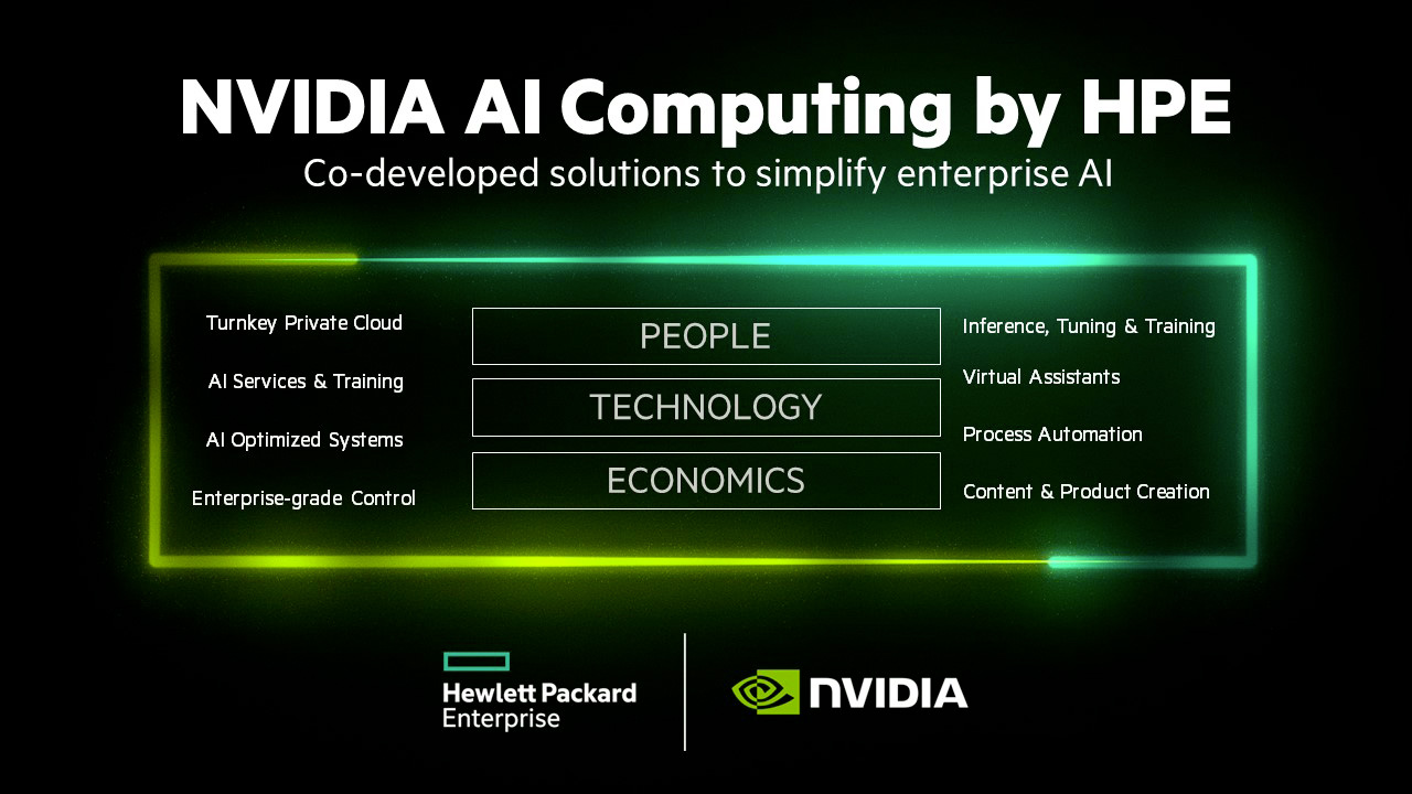 Annunciato durante il keynote di HPE Discover da Antonio Neri, Presidente e CEO di HPE, a cui si è unito Jensen Huang, fondatore e CEO di NVIDIA, NVIDIA AI Computing by HPE segna l’espansione di una partnership decennale e riflette il significativo impegno di tempo e risorse da parte delle due aziende.