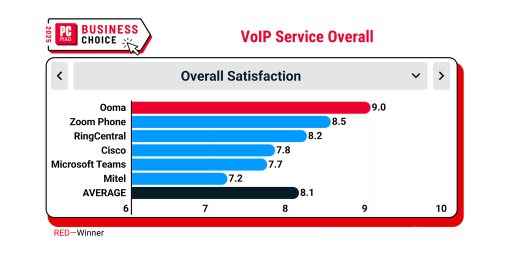 The award (https://www.pcmag.com/articles/business-choice-2025-the-top-voip-provider-according-to-our-readers) is based on the magazine’s annual Business Choice survey of its readers, with Ooma emerging as the top provider of VoIP phone service among finalists including Cisco, Microsoft Teams, Mitel, RingCentral and Zoom.