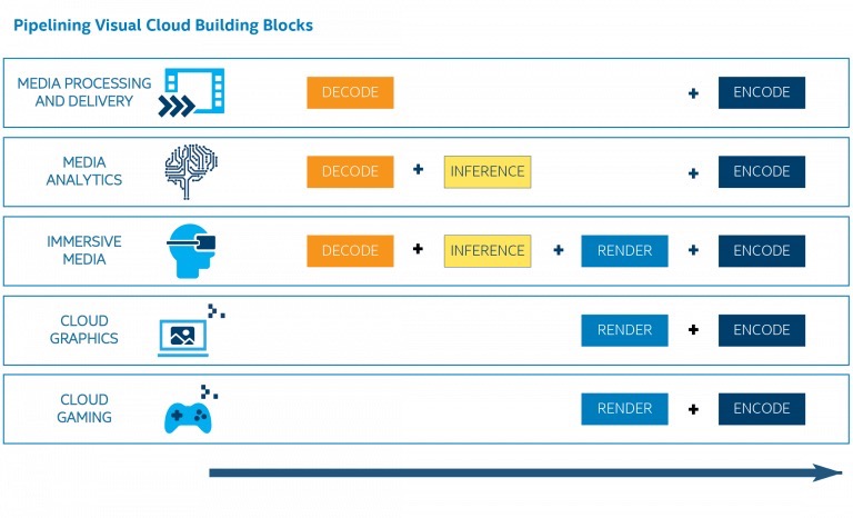Le pipeline di riferimento di Open Visual Cloud sono costituite da ”ingredienti software” altamente ottimizzati per applicazioni multimediali, di intelligenza artificiale e di rendering. Consentono agli sviluppatori di valutare, ottimizzare e distribuire rapidamente nuovi servizi e applicazioni. Senza dover investire pesantemente nell’ottimizzazione del software a basso livello.