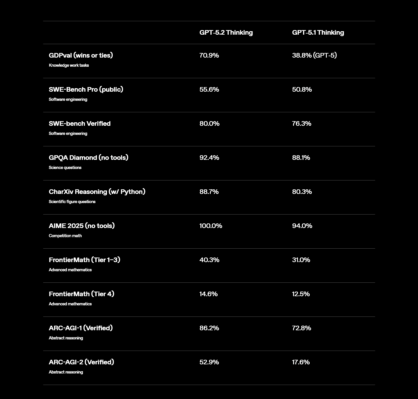 Sul fronte delle performance, GPT-5.2 si distingue in misura significativa. Nel benchmark GDPval, progettato per misurare la qualità del lavoro professionale attraverso venticinque categorie di compiti e quarantaquattro professioni, il modello supera o eguaglia la performance di specialisti umani nel settanta virgola nove per cento dei casi. Il benchmark non valuta semplici risposte a domande, ma deliverable concreti come presentazioni commerciali, analisi tecniche, fogli di calcolo articolati, proiezioni finanziarie, strutturazione di turni ospedalieri, materiali video e schemi operativi. Il tempo di realizzazione risulta undici volte più rapido rispetto a un professionista umano e il costo stimato è inferiore all’uno per cento, mantenendo una qualità complessiva paragonabile alle uscite di team specializzati. Un giudice indipendente ha descritto l’output come “il lavoro di un’azienda professionale con uno staff dedicato, completo di layout studiato e suggerimenti solidi”, confermando il salto qualitativo osservato.