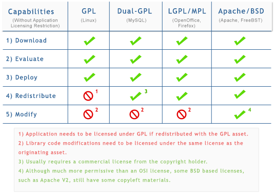 A dire il vero la gran parte dei progetti open source di interesse oggi per le aziende è coperta da licenze che non pongono particolari ostacoli allo sviluppo interno.