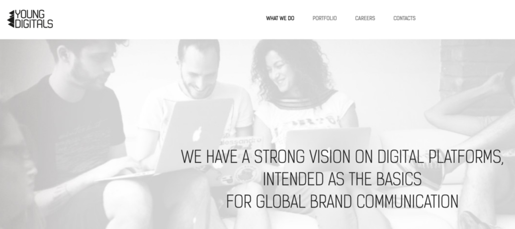 Young Digitals è uno studio creativo di Padova composto da un team di 50 professionisti provenienti da Europa, Nord America e Asia. Nata nel 2010 l’agenzia è cresciuta anno dopo anno con un progressivo aumento di fatturato, di clienti e di personale, legato ai due elementi di forte differenziazione nel mercato: la gestione centralizzata della comunicazione su scala globale e il forte accento sulla produzione creativa che si traduce nella presenza all’interno dell’agenzia di uno studio di produzione foto e video. L’agenzia ha maturato esperienza con brand internazionali e con molte eccellenze del made in Italy, nei settori del fashion, del gioiello, del food e del design. Fondatore è Michele Polico.