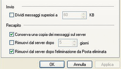 Lasciare la corrispondenza sul server solo per un certo numero di giorni, o