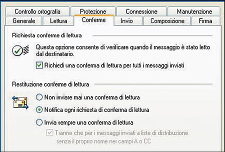 Per richiedere la conferma di lettura del messaggio che stiamo inviando, selezionare