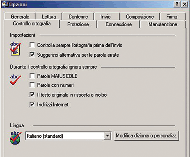 alla speciale casella, si sceglie il dizionario da utilizzare per i controlli.