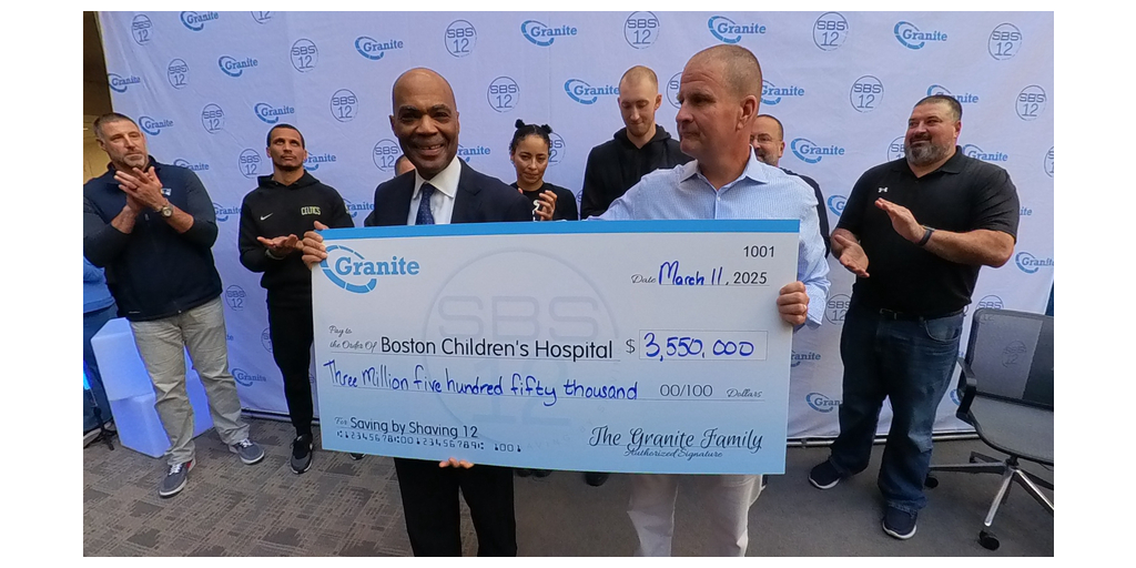 QUINCY, Mass.--(BUSINESS WIRE)--#savingbyshaving--Granite Telecommunications, a leading $1.8 billion provider of communications and technology solutions to businesses and government agencies, announced that more than 700 people, including New England Patriots Coach Mike Vrabel, Boston Celtics Coach Joe Mazzulla and Boston Celtics small forward Sam Hauser, participated in its flagship fundraiser, 12th annual “Saving by Shaving” event. The charitable drive raised over $3.55 million for Boston Children’s Hospital, bringing the total raised in the history of the event to more than $58.5 million.
