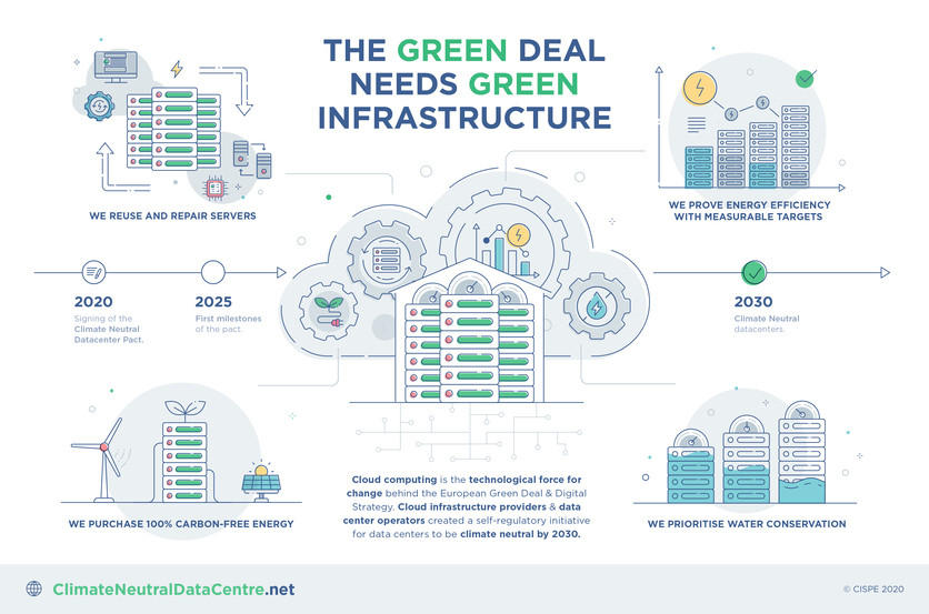 Un anno dopo l’adozione del Green Deal europeo i provider di infrastrutture cloud e operatori di data center hanno creato il Patto per la neutralità climatica dei data center.
