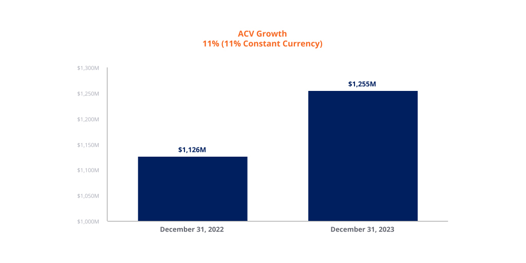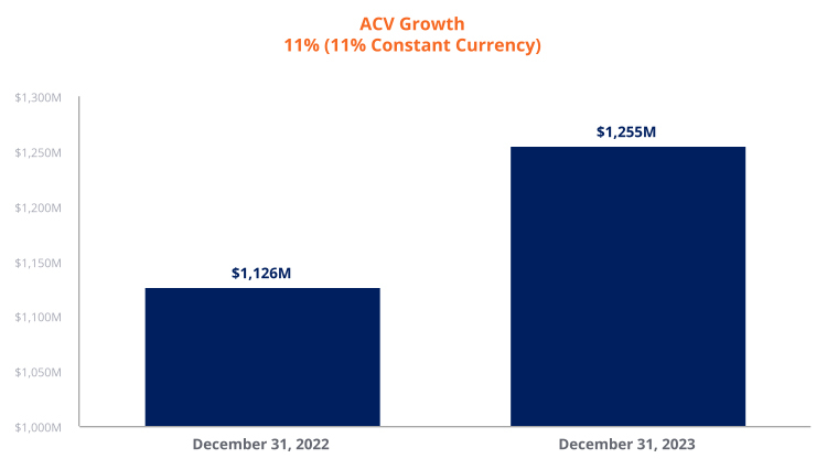 Note: ACV (constant currency) is calculated by applying the 31 Dicembre 2022 foreign exchange rates to all periods shown.