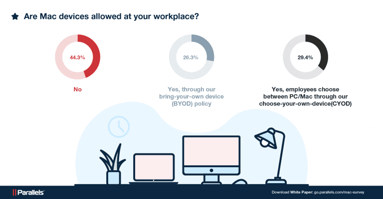 Il 26% di tutti gli intervistati, quasi la metà delle aziende che autorizzano Mac al loro interno, ha dichiarato che i computer Apple sono strettamente una questione Byod nella propria azienda. Ciò significa, avvisa Parallels, che per un gran numero di questi dispositivi introdotti nell’azienda manca device management e controllo e che questi potrebbero non essere in alcun modo integrati nella strategia It dell’organizzazione.