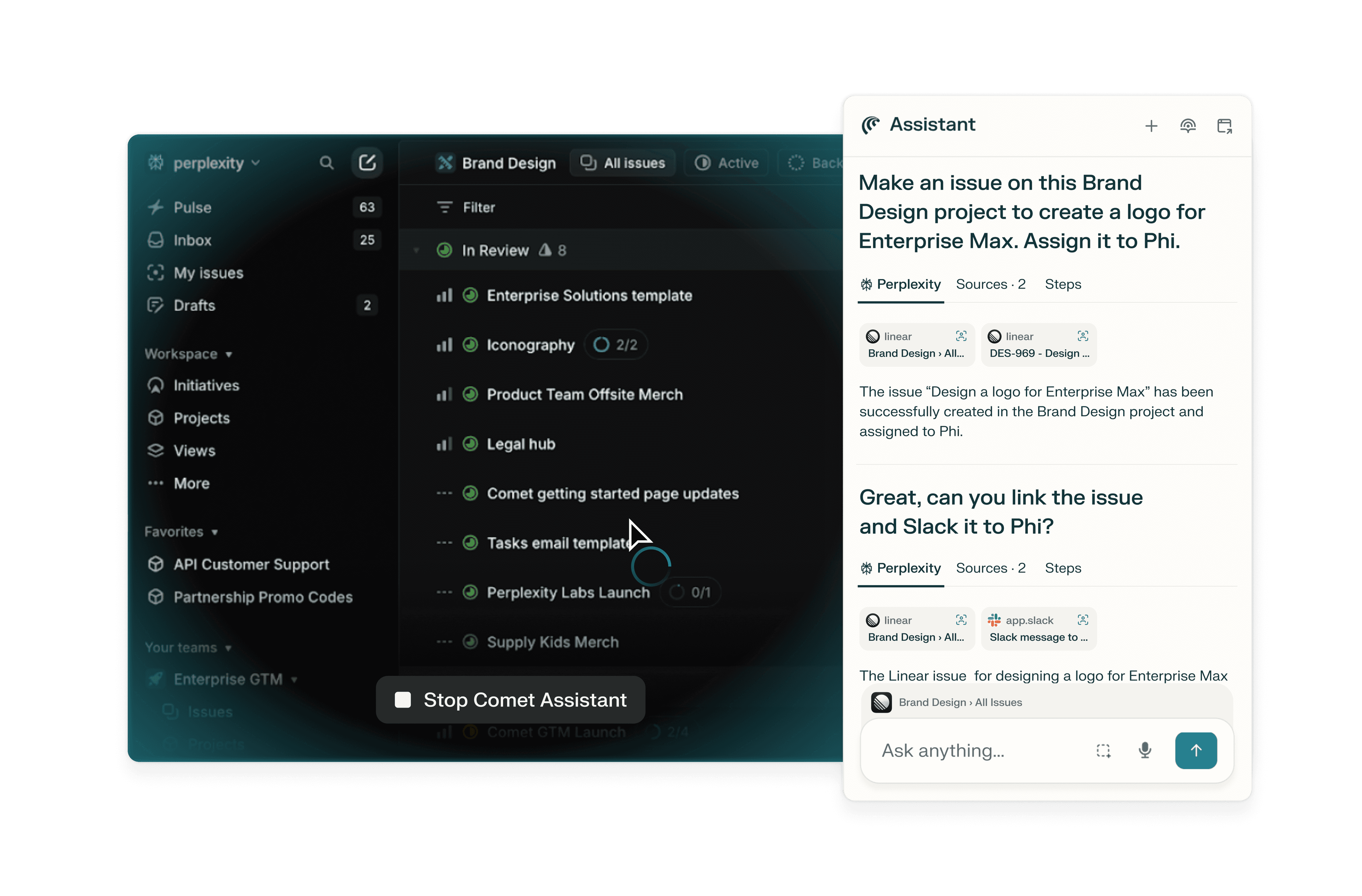 Combinando sicurezza di livello enterprise, potenti funzionalità AI ed esperienze utente intuitive, Comet vuole rendere il lavoro più piacevole. Quando i compiti di routine vengono automatizzati, quando le informazioni diventano immediatamente accessibili, quando i workflow diventano intelligenti, i team riscoprono ciò che è possibile ottenere quando la tecnologia è davvero al servizio del potenziale umano.