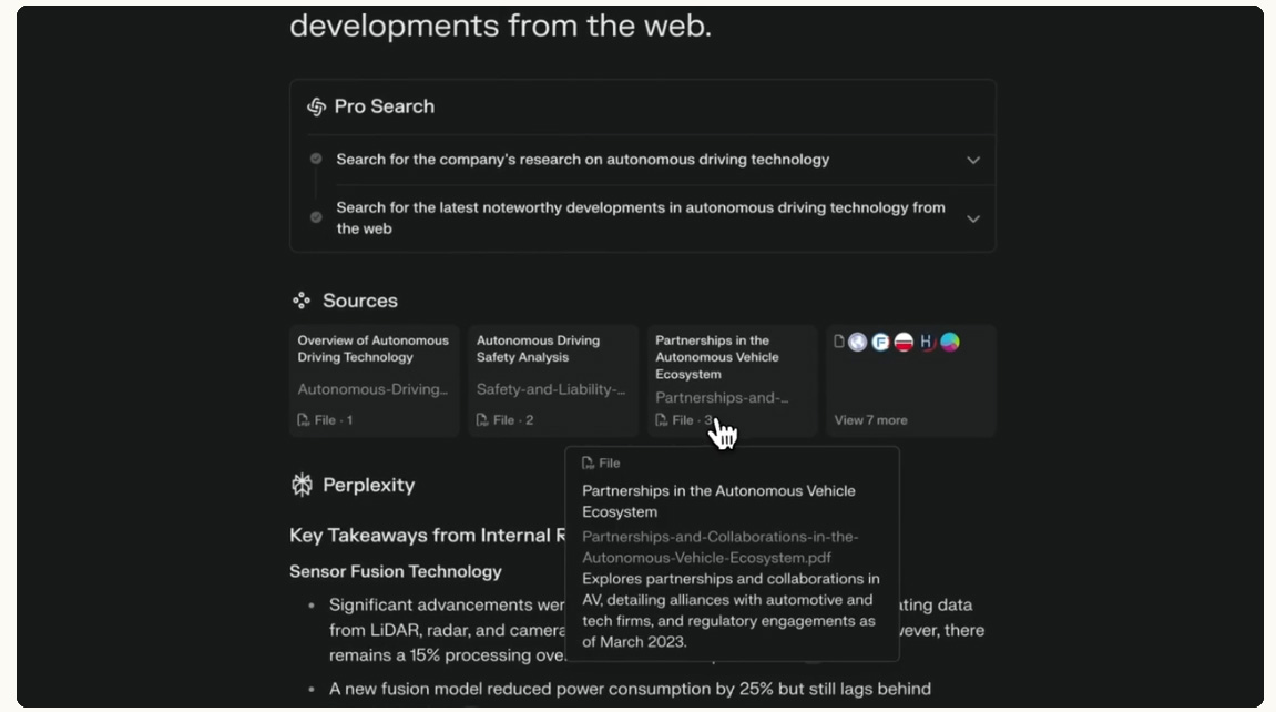 Ora il team ha risposto a questa esigenza dei clienti: con Perplexity Pro ed Enterprise Pro, adesso è possibile effettuare ricerche sia tra i contenuti web pubblici che tra le proprie basi di conoscenza interne. Gli utenti possono accedere senza problemi e fare sintesi delle migliori informazioni da tutte le fonti per ottenere le risposte di cui hanno bisogno, più rapidamente.