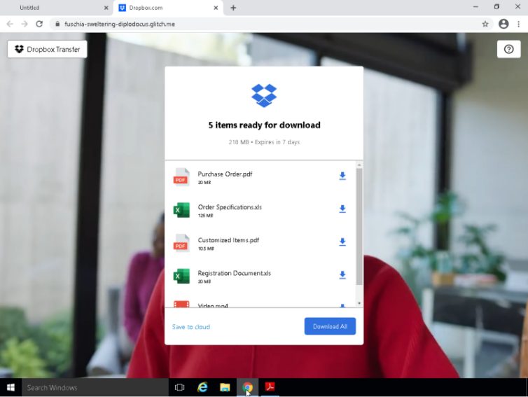 Quando la vittima clicca sul link “Visualizza l’allegato online“, viene indirizzata a una pagina di phishing che imita il sito di Dropbox. L’obiettivo è far credere alla vittima di accedere a un servizio legittimo per visualizzare un documento, mentre in realtà sta rivelando informazioni sensibili ai cybercriminali.