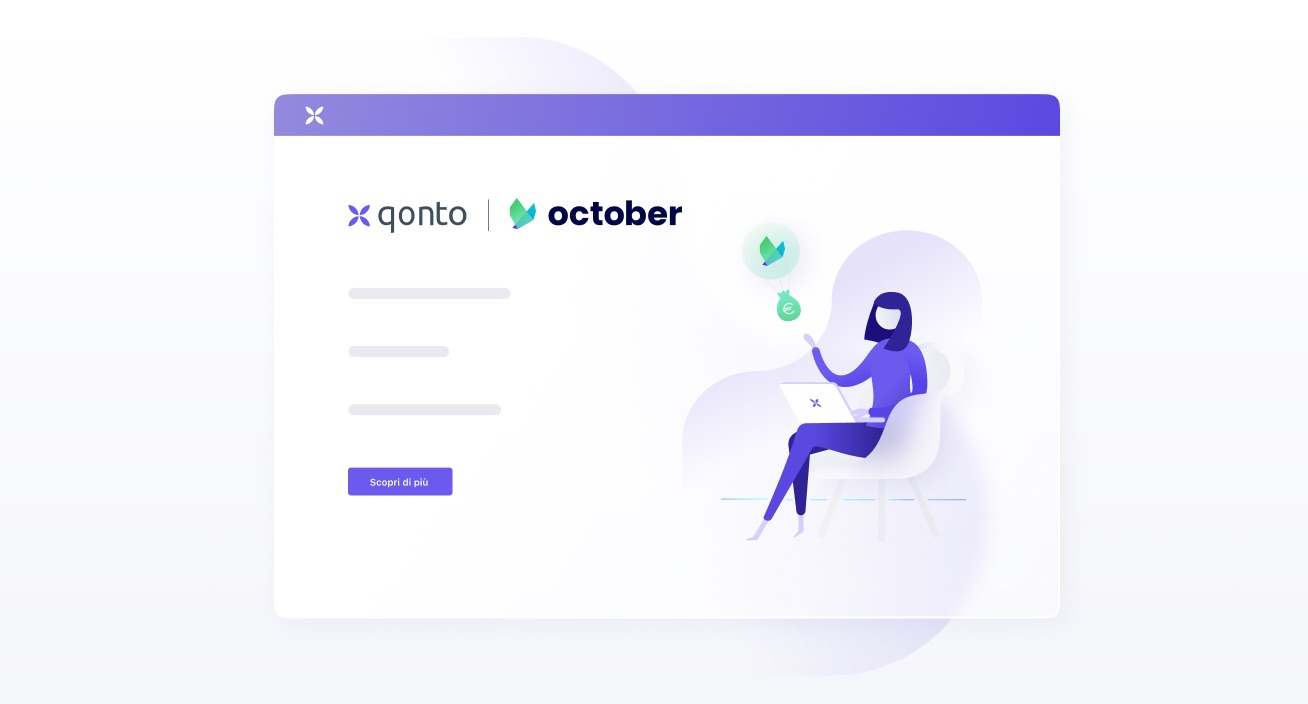In Italia l’offerta di October per i clienti Qonto sarà attivata nel corso del mese di maggio, ma già oggi per le imprese è possibile segnalare il proprio interesse per un      finanziamento, così che la propria richiesta venga gestita prioritariamente appena il servizio sarà operativo.