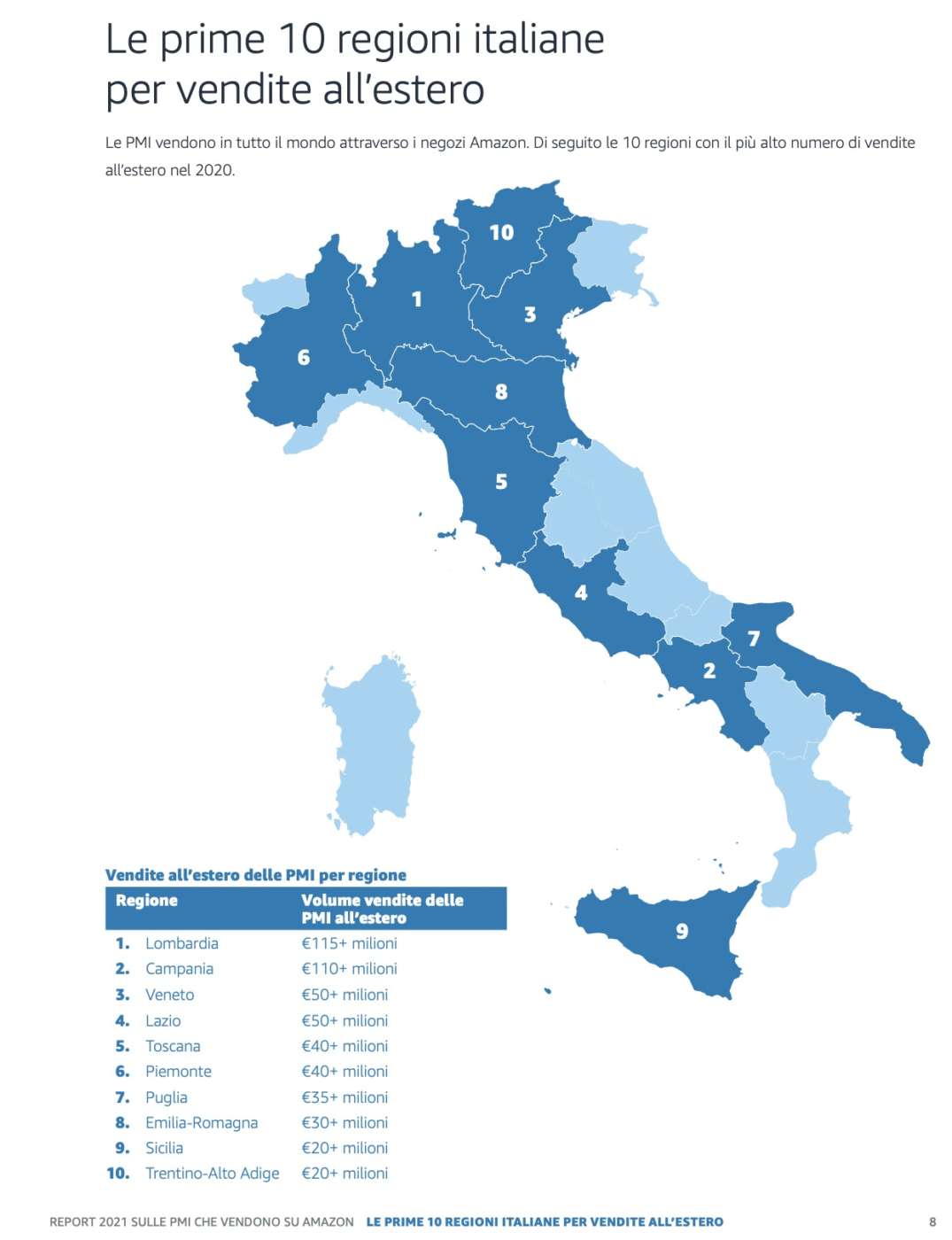 Le Pmi che vendono su Amazon hanno sede in tutte le regioni italiane e in due di esse ci sono oltre 2.000 partner di vendita. Non vendono solo nel proprio Paese, ma anche in tutto il mondo attraverso i negozi Amazon, raggiungendo un export totale di oltre 600 milioni di euro nel 2020.