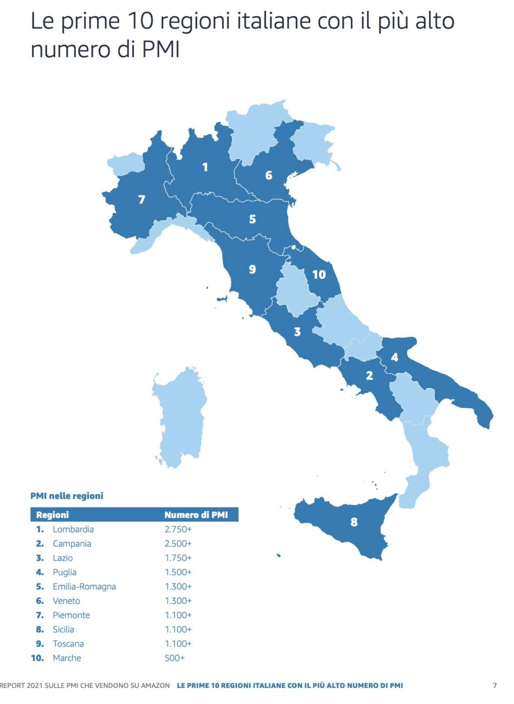Le Pmi che vendono su Amazon hanno sede in tutte le regioni italiane e in due di esse ci sono oltre 2.000 partner di vendita. Non vendono solo nel proprio Paese, ma anche in tutto il mondo attraverso i negozi Amazon, raggiungendo un export totale di oltre 600 milioni di euro nel 2020.